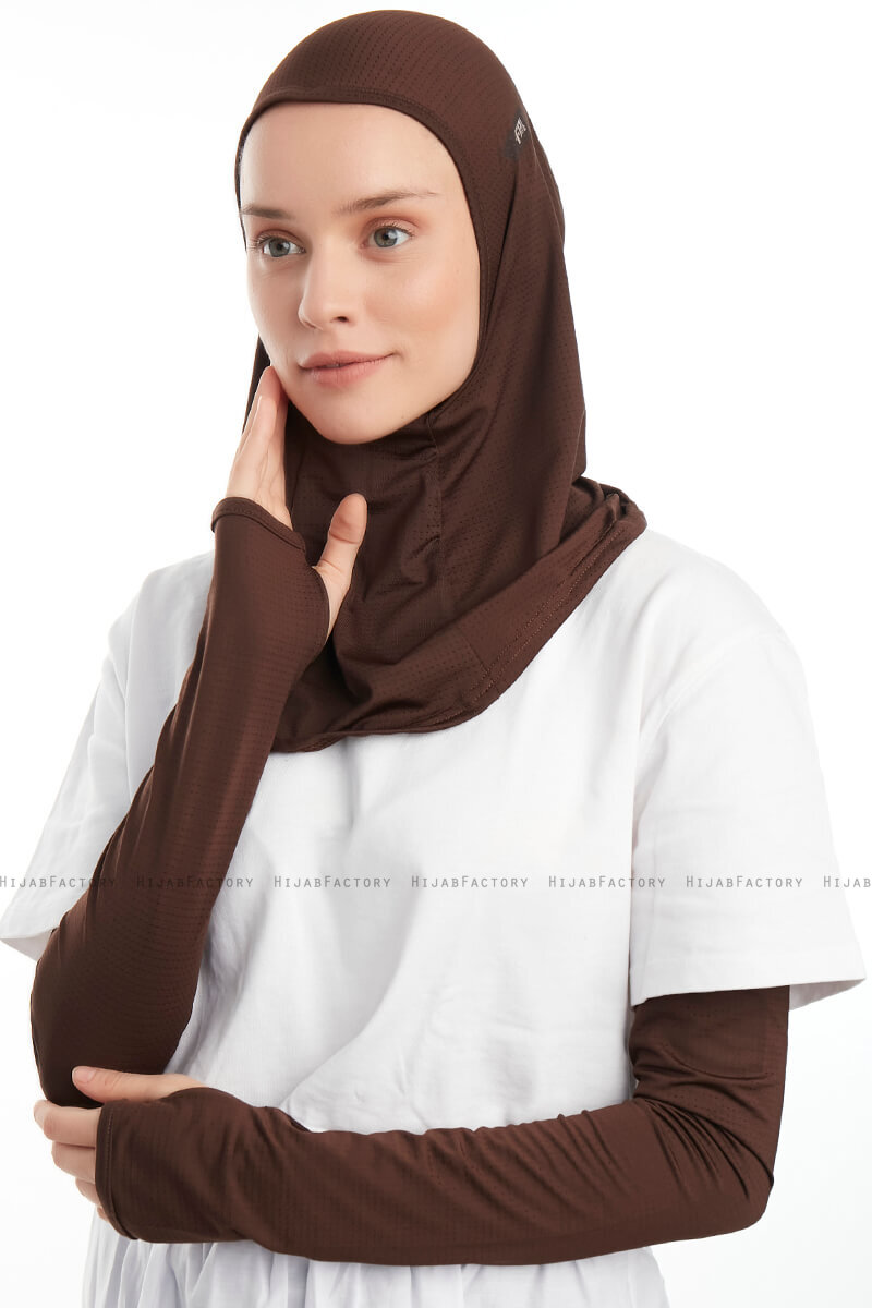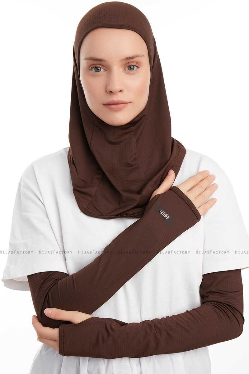 Bayda - Bruin Pro Sport Hijab Set.Set van 1 hijab en 2 armen.