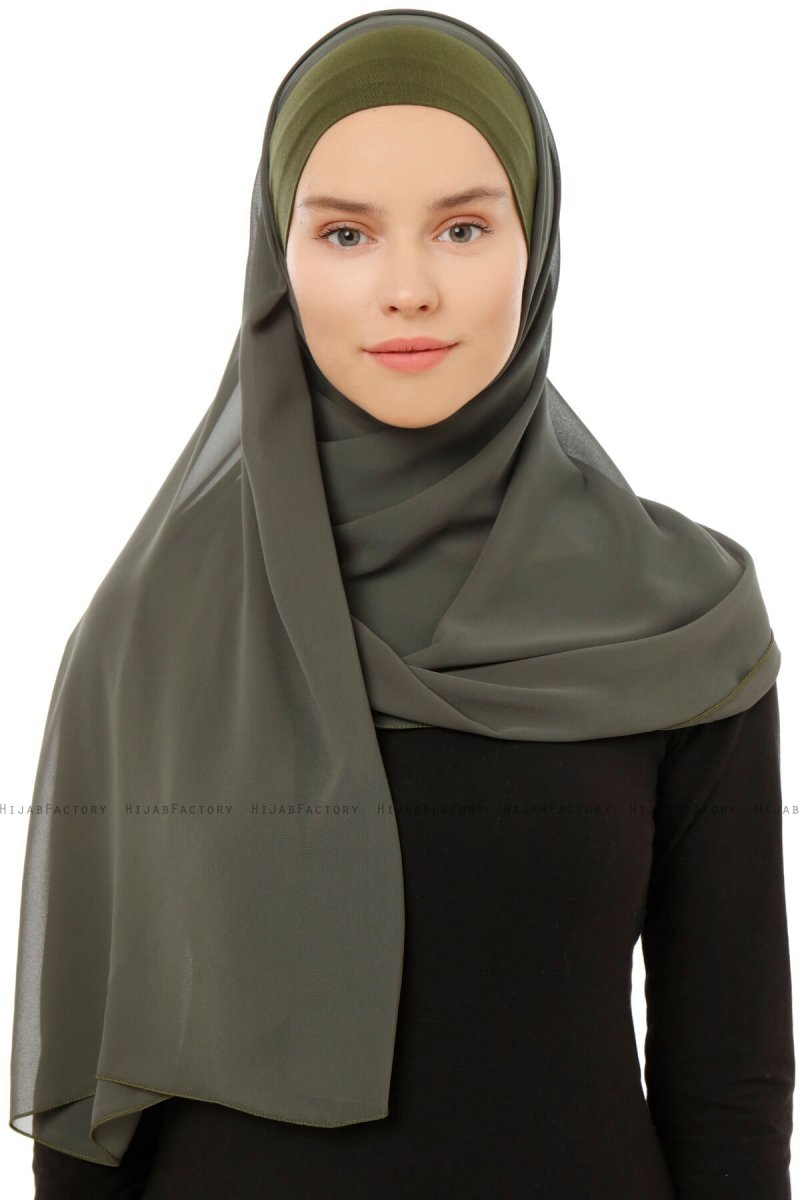 Alara Plain - Khaki Praktisch One Piece Chiffon Hijab Van Ecardin in Turkije.