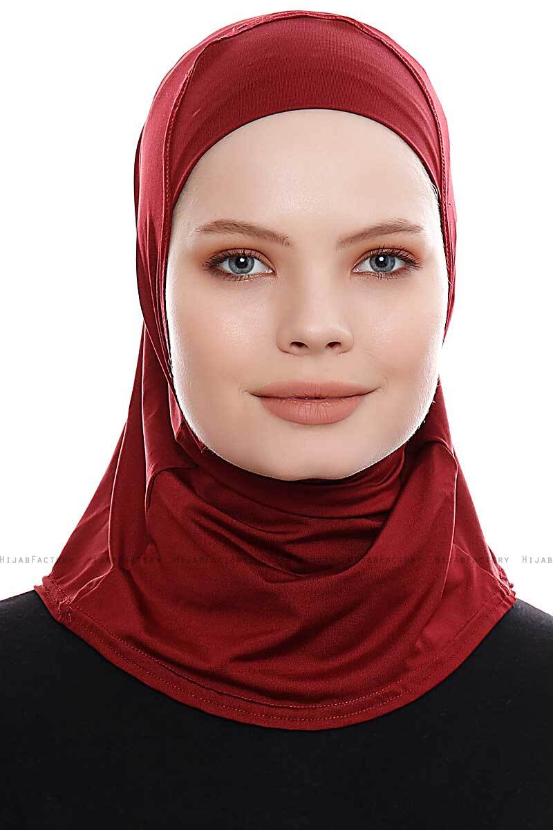 Elif - Bordeaux Sport Hijab van Ecardin. De stof is ademend microfiber.