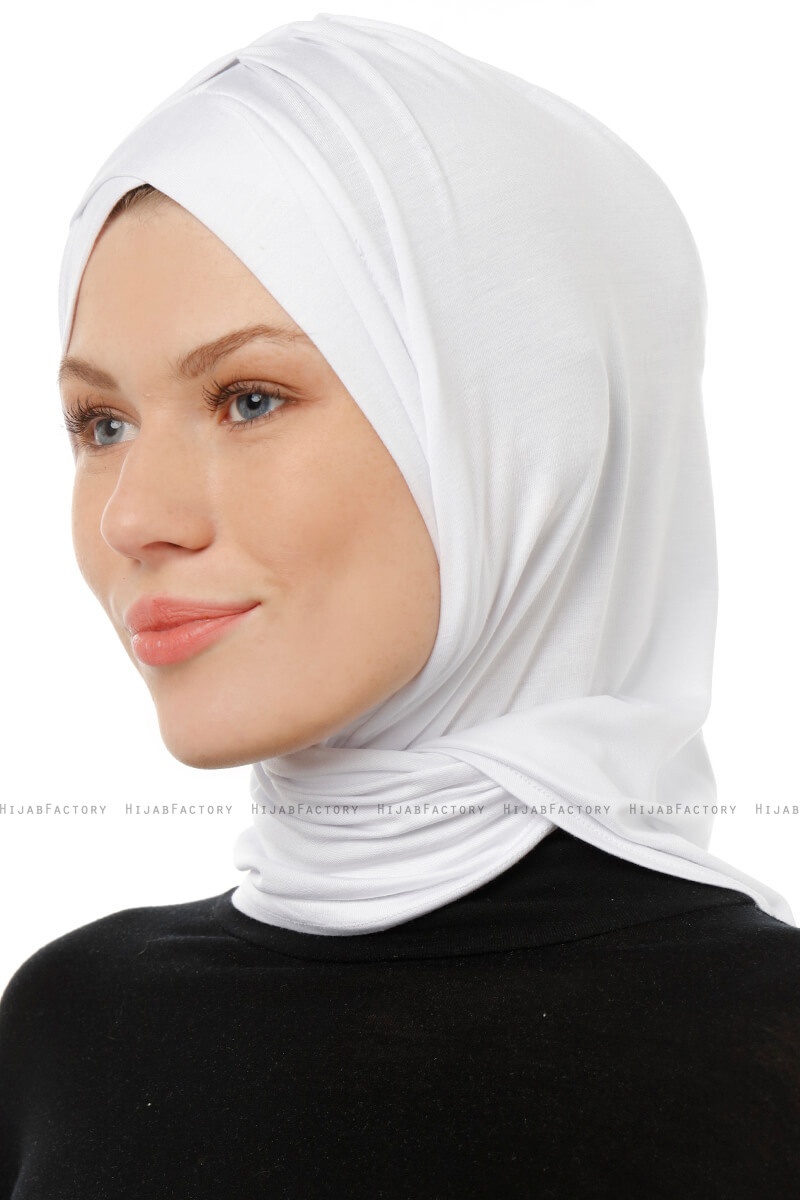 Isra Cross - Wit Praktisch One-Piece Viscose Hijab Van Ecardin in Turkije.