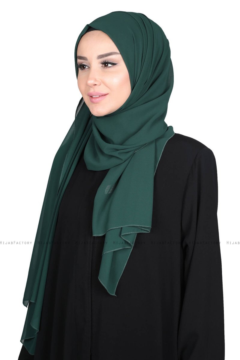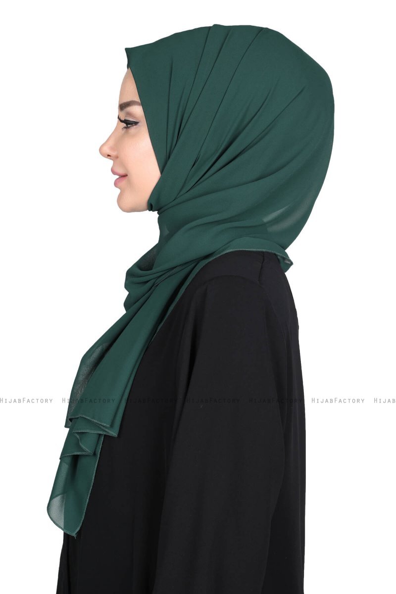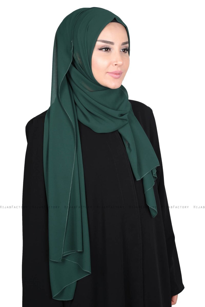 Joline - Donkergroen Premium Chiffon Hijab Van Ayse Turban.