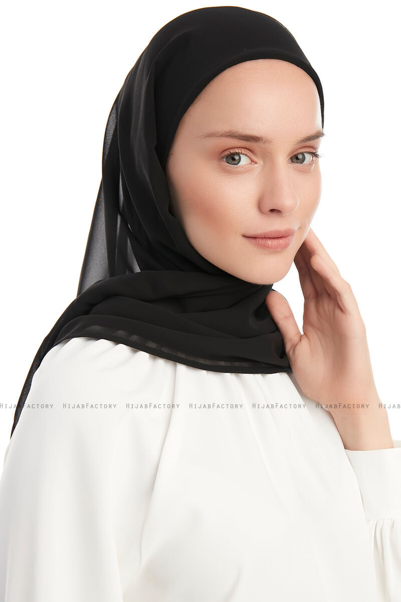 Sahar - Zwart Praktisch One Piece Chiffon Hijab Van Ecardin in Turkije.